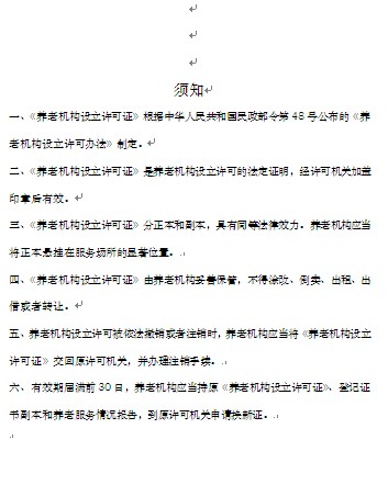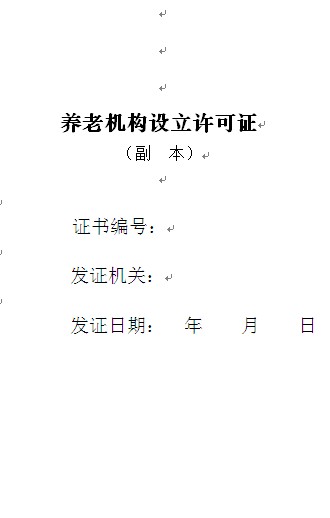 十二、各地可按照我部规定的式样,结合实际需要数量,组织印制《养老机构设立许可证》。