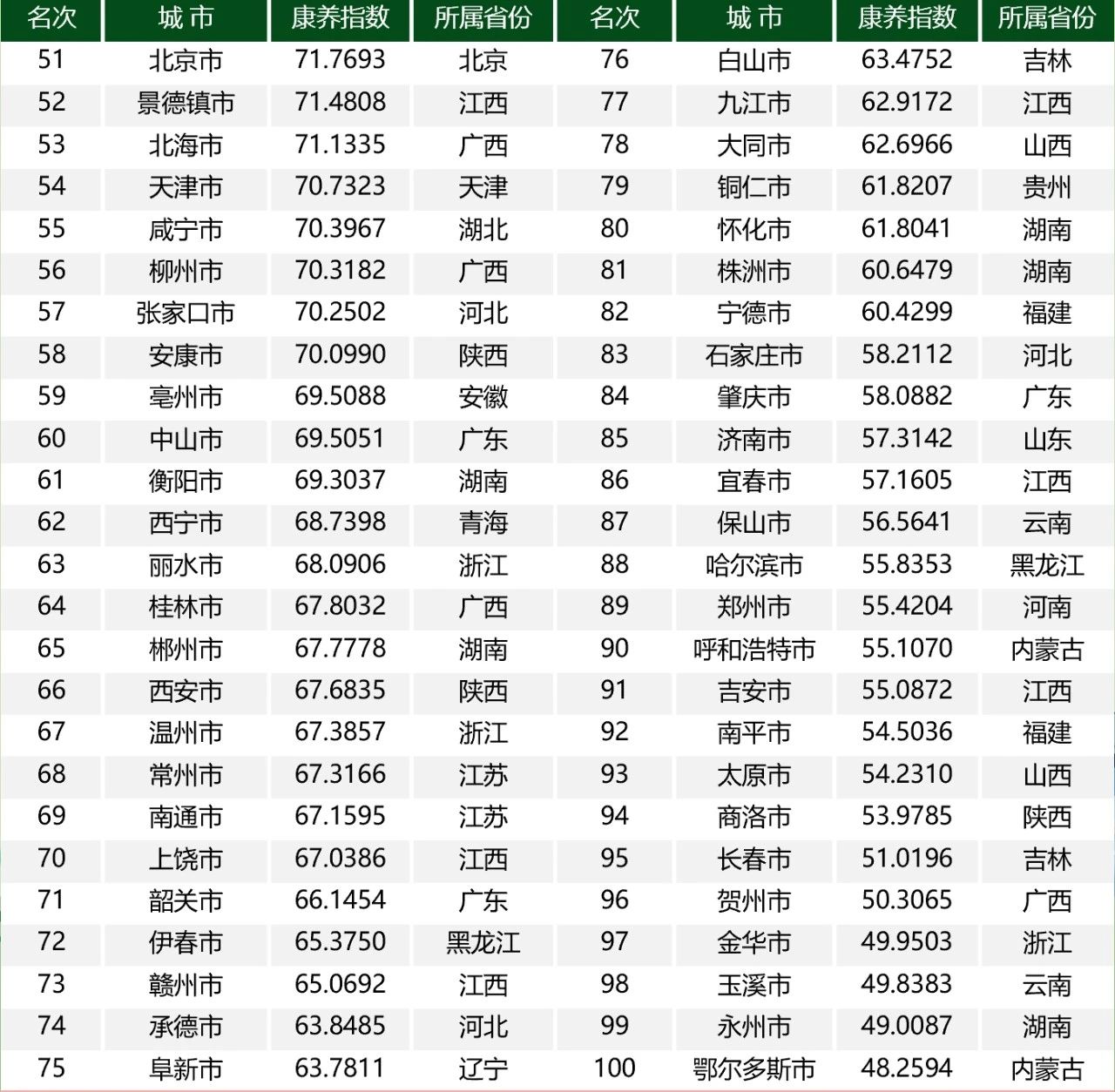 2023年,随着北京市将旅居养老作为养老服务体系的重要内容,康养城市将更加受到大家的关注,经过研究和大数据分析,2023中国康养城市排行榜100强为: