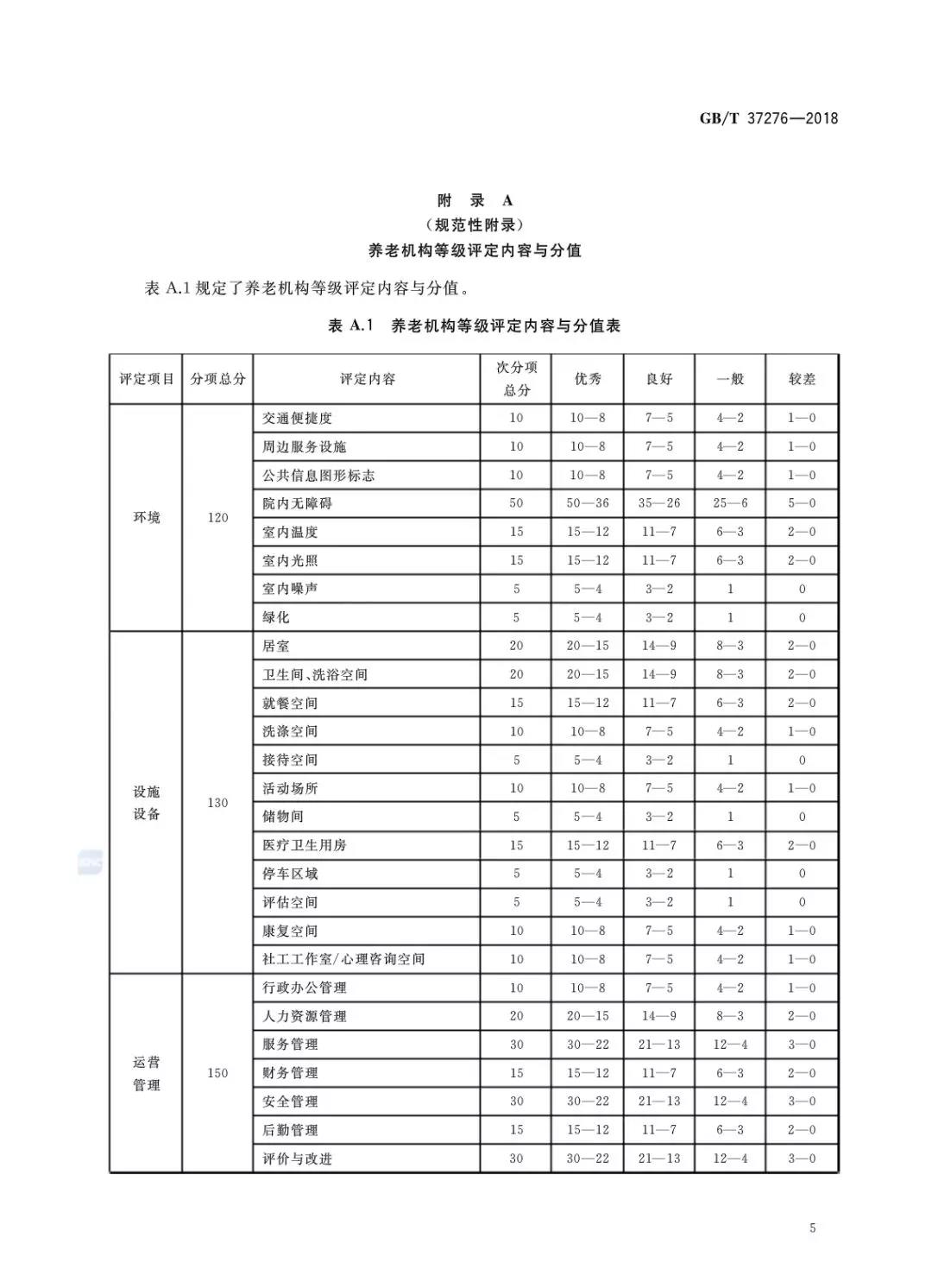 “目前全国注册登记的养老机构有2.98万个,机构床位392.8万张,随着老龄化加剧,到养老机构养老成为越来越多老年人的选择,本次发布的标准将填补养老机构等级划分与评定国家标准的空白。”民政部养老服务司处长李邦华介绍,《养老机构等级划分与评定》提出了102条具体要求,并将养老机构分为五个等级,等级越高,表明养老机构综合服务能力越高。